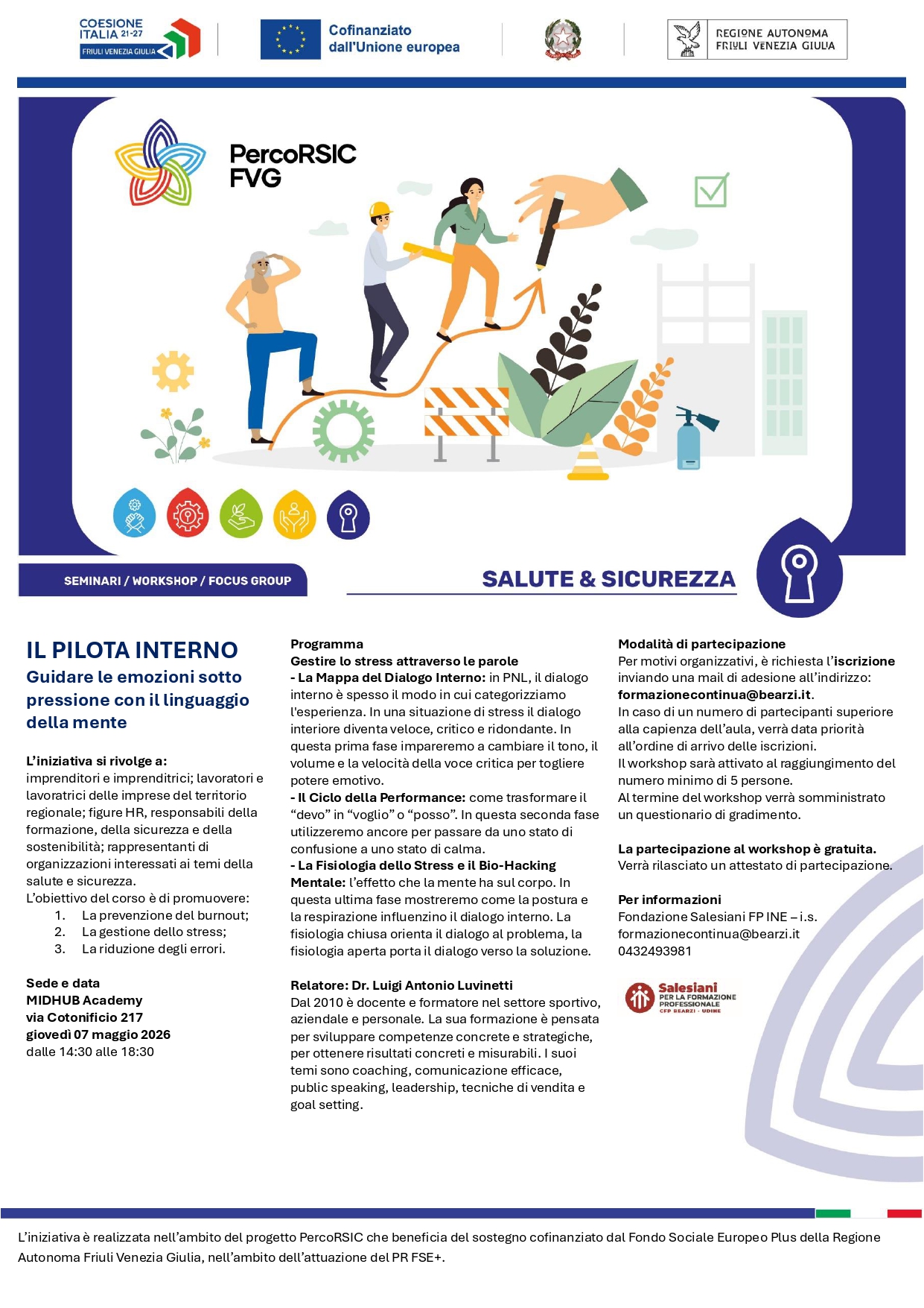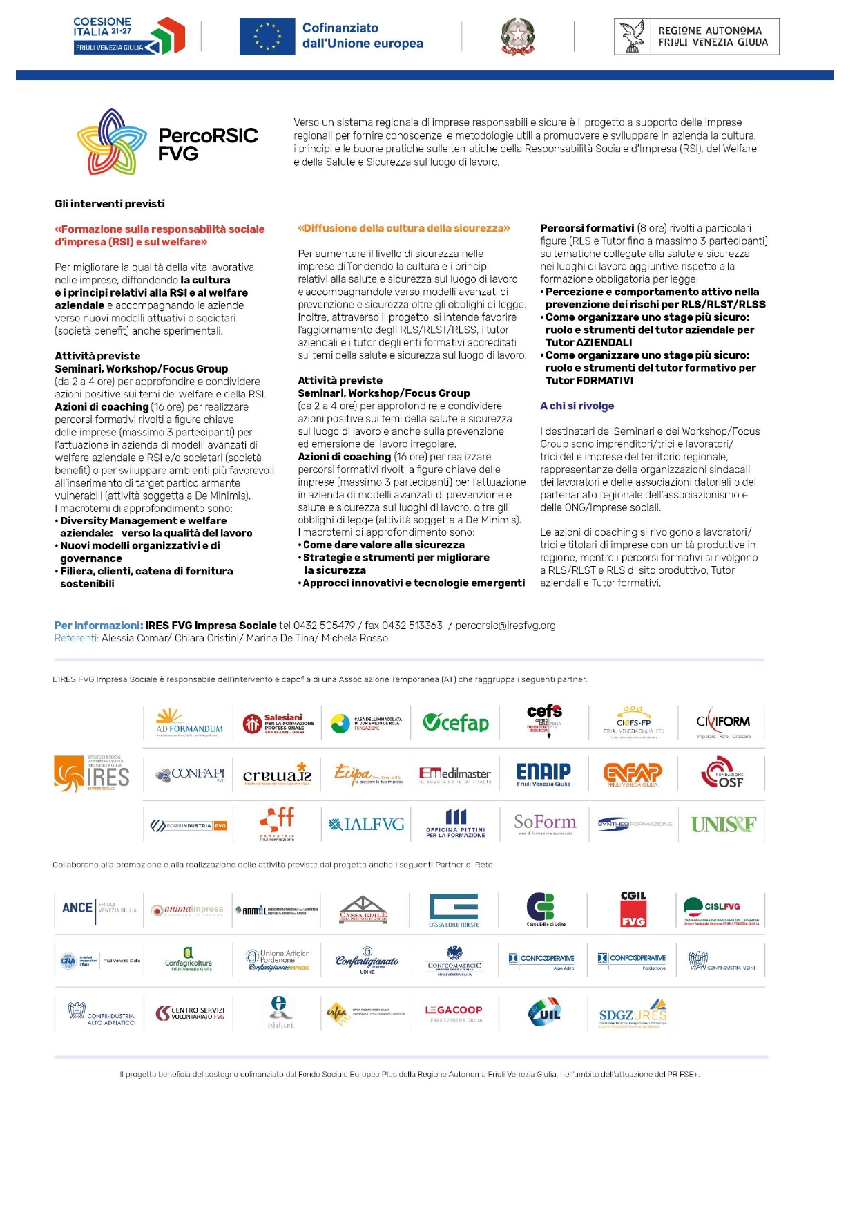 L’iniziativa è realizzata nell’ambito del progetto PercoRSIC che beneficia del sostegno cofinanziato dal Fondo Sociale Europeo Plus della Regione Autonoma Friuli Venezia Giulia, nell’ambito dell’attuazione del PR FSE+.